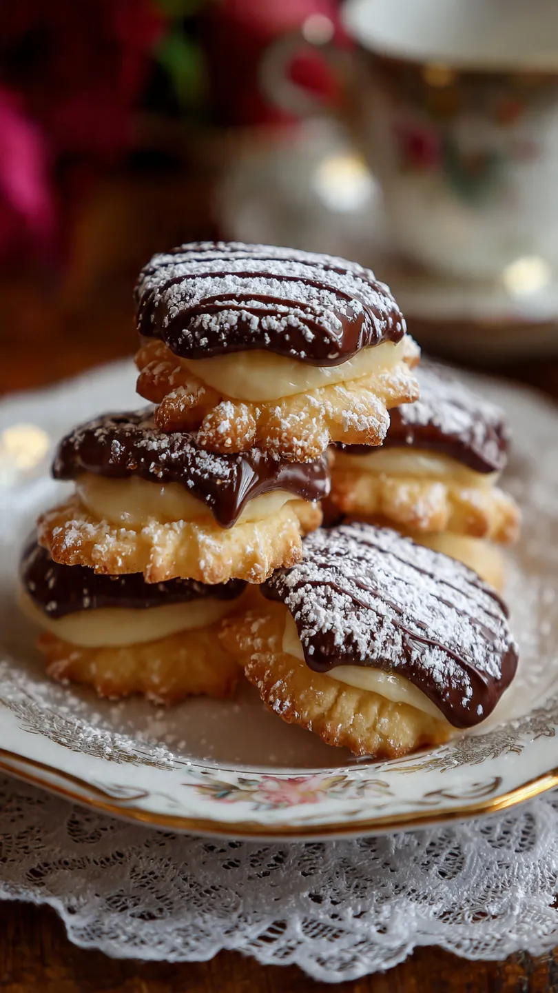 Wiener Plätzchen, die Zergehen auf der Zunge! gehören zu den elegantesten und köstlichsten Gebäcken der österreichischen Backtradition. Sie sind butterzart, fein knusprig, mit einer cremigen Vanillefüllung und einer glänzenden Schokoladenschicht überzogen. Diese Plätzchen haben ein unvergleichliches Aroma und sind ein wahrer Genuss zu Kaffee, Tee oder als festliche Aufmerksamkeit in der Adventszeit.